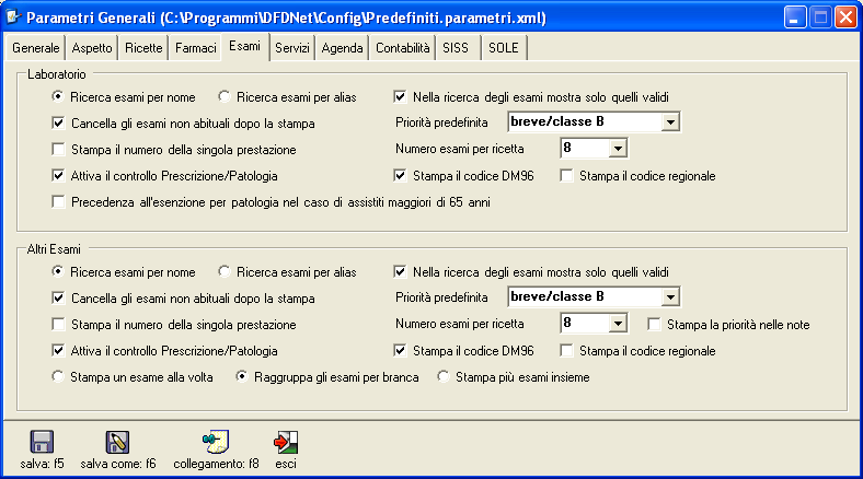- Numero esami per ricetta - indica il numero massimo di prestazioni prescrivibili su una singola ricetta.