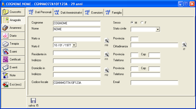 Premete i tasti [ctrl + F] per richiamare la scheda "Anagrafe - Famiglia"