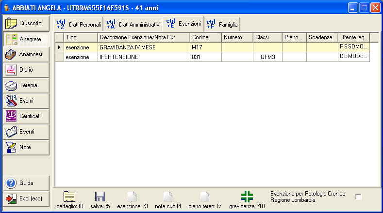 Per inserire o aggiornare l'esenzione per gravidanza una volta inserita la data dell'ultima mestruazione premere il punsalte [esenzione: f10].