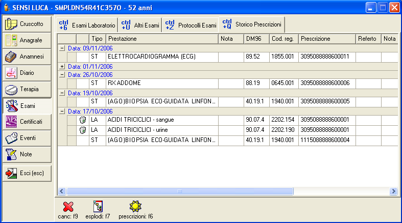Se si vuole accedere al dettaglio delle prescrizioni selezionare una prescrizione nella griglia e premere il pulsante [dettaglio: f8].