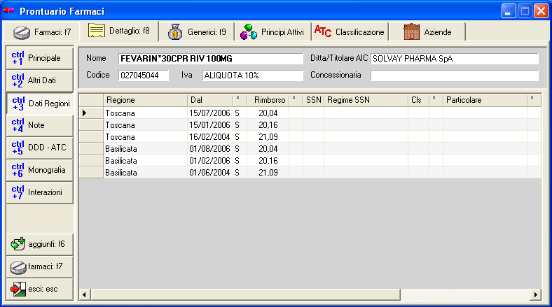 Prontuario - Dettaglio - Dati regionali
