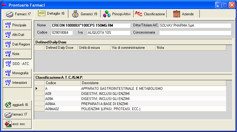 La scheda "DDD - ATC" permette di consultare la "Defined Daily Dose" e la classe ATC del farmaco selezionato come mostrato in figura.