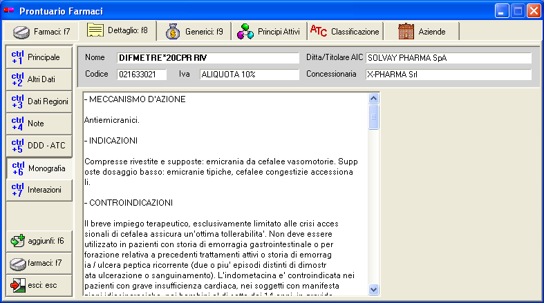 La scheda "Monografia" permette di consultare il testo della monografia del farmaco selezionato come mostrato in figura.