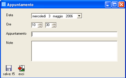 Per registrare un impegno é sufficiente selezionare, con un click, nella griglia del diario la riga corrispondente all'ora prescelta e digitare direttamente l'appunto.