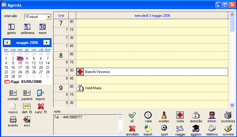 Nello stesso modo é possibile registrare un appuntamento con una persona presente nella rubrica dei contatti utilizzando il pulsante [contatti].