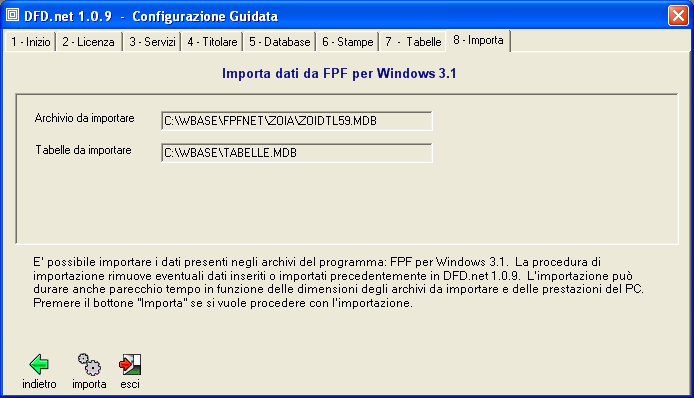 Configurazione Guidata - 8 - Importa dati da FPF per Windows 3.1