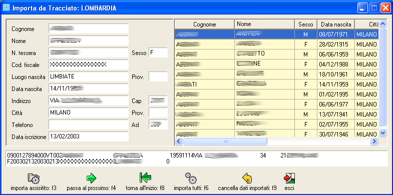 Per importare l'assistito mostrato nel pannello premere il pulsante [importa assistito]: l'assistito viene importato solo se non ancora presente nell'archivio del programma, in caso contrario viene segnalato un messaggio di rifiuto.