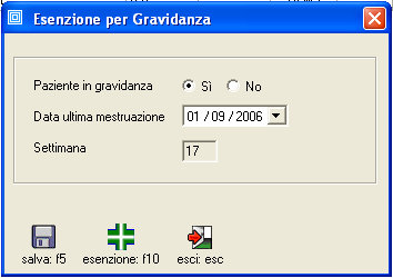Per inserire o aggiornare l'esenzione per gravidanza una volta inserita la data dell'ultima mestruazione premere il punsalte [esenzione: f10].