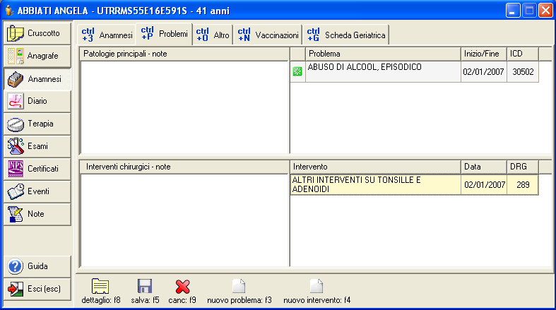 Una volta impostati i valori desiderati premere il pulsante [salva: f5] per aggiungere il problema nella scheda dell'assistito.