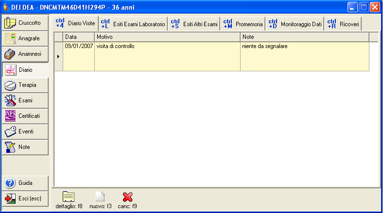 La scheda "Diario Visite" permette la registrazione delle visite effettuate dall'assistito.
