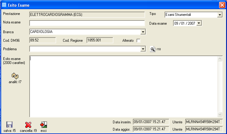 Nel campo "esito esame" è possibile inserire il referto in forma testuale, semplicemente trascrivendone il risultato (per esempio nel caso di una radiografia).
