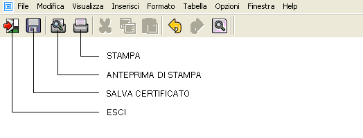 Premendo Esci si torna alla scheda Altri Certificati. Se il certificato non è già stato salvato il programma chiede se lo si vuole salvare. Scelgiendo si viene proposta la maschera per l'immissione del nome del certificato. Premendo no il certificato non viene salvato. Premendo annulla si rimane nel word processor.